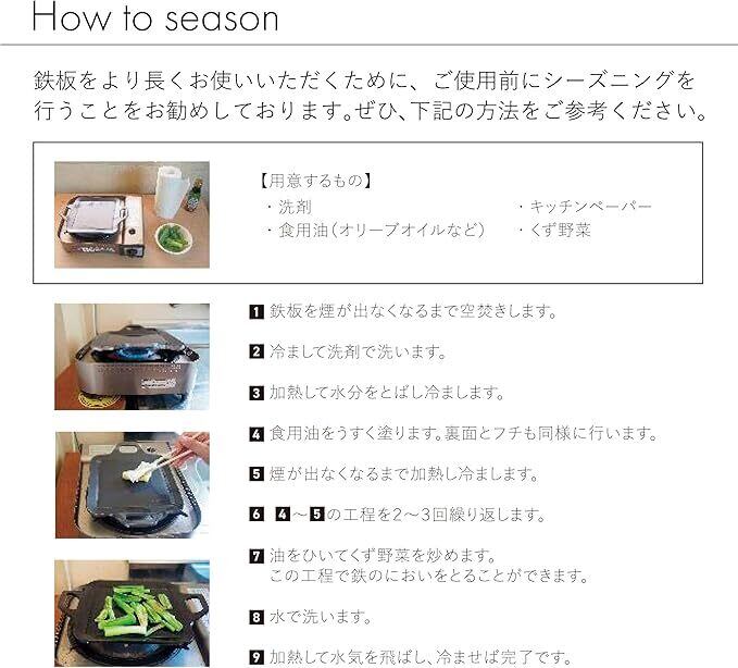 厚さ6mmと極厚の鉄製グリルプレートです。熱伝導がムラなく均一なのが特長。保温性、蓄熱性が高く、厚い食材にもしっかりと熱を通すことができます。