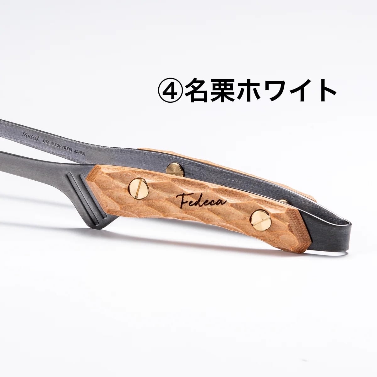 FEDECAのナイフシリーズとコーディネートできるように、ウォルナットなどの天然木や強化木、積層材を使用した個性豊かなハンドルが特徴です。好みに合わせて素材や色を選べます。